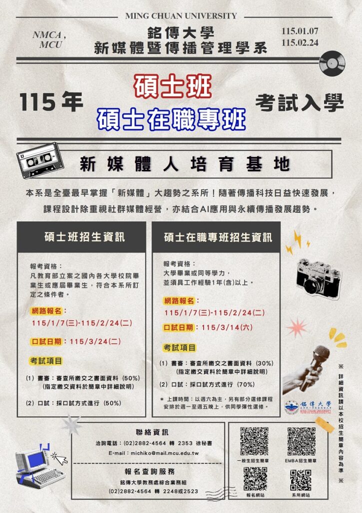 ※報名、口試日期等相關資訊,請以本校招生簡章內容為準。※